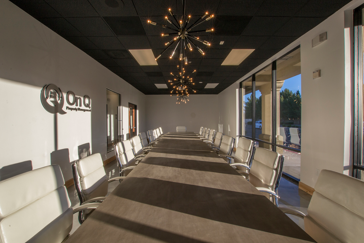 On Q Property Management needed a new home in 2016 after spending only 3 years in their last office in Mesa, Arizona. Their quick growth along with plans to continue growing made it necessary to move and to remodel the space to fit their style and needs. The old cubicles left behind were demolished to make room for custom wooden cubicles. Three conference rooms were formed, multiple private offices created, and the reception area was renewed. This Tenant Improvement was unique, yet fit the modern open work space model that is very popular today.